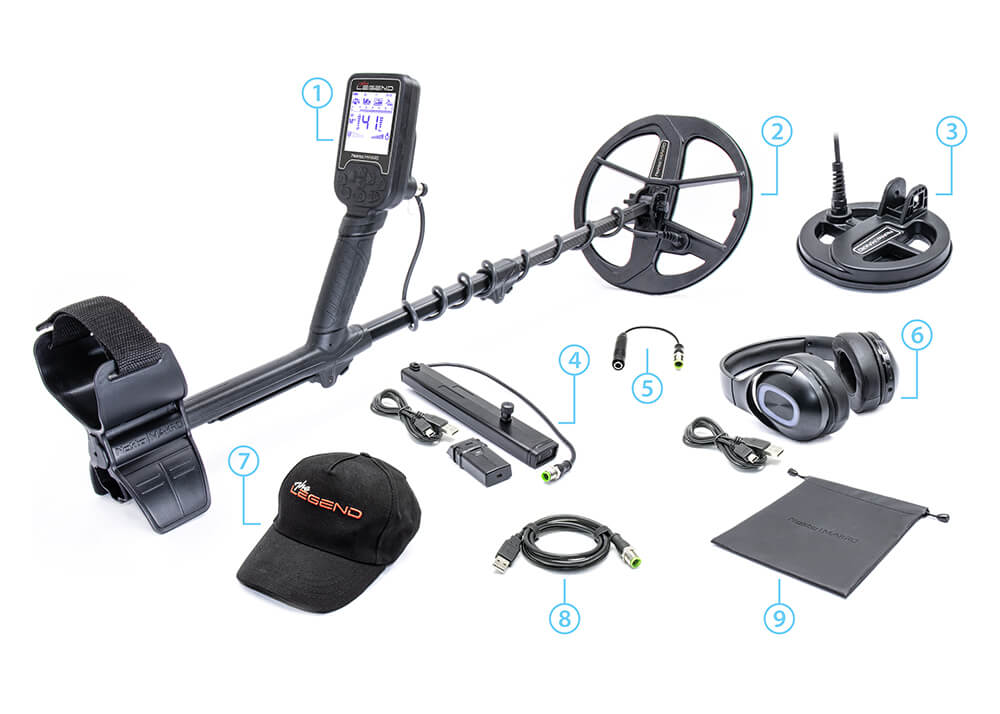 Ein integriertes Funkmodul ist natürlich ein Muss, aber The Legend wird je nach Version auch mit hochwertigen Bluetooth aptX™ Low Latency-Kopfhörern geliefert. Diese Kopfhörer decken Ihre Ohren vollständig ab, so dass Umgebungsgeräusche Sie nicht stören, wenn Sie sich auf die Töne Ihres Metalldetektors konzentrieren.